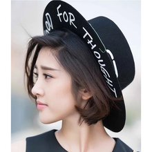韩版毛呢帽字母别针平顶礼帽 街拍走秀百搭原宿男女毛呢大檐帽子
