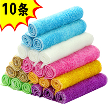 10条装竹纤维洗碗巾 厨房不沾油双层抹布 加厚吸水洗碗布清洁巾