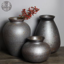 原素陶艺日式插花花瓶 手工粗陶花器古朴简约 花插复古桌面摆件