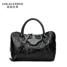 洛纳丹蒂真皮女包大包女士手提包2017新款头层牛皮女包压花斜挎包