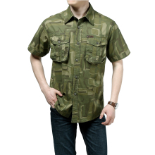 男士短袖衬衫正品AFS JEEP商务水洗迷彩双口袋大码宽松衬衣