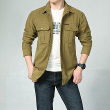 Jeep chariot/吉普战车新款长袖衬衫男直筒大码卡其色多口袋外套