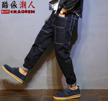 夏季哈伦裤男小脚裤潮牌牛仔裤日系复古风弹力裤子男宽松大码薄款