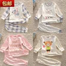 包邮全棉空气棉宝宝高腰护肚裤保暖内衣套装婴儿睡衣