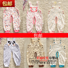 包邮春秋童装婴儿秋裤宝宝纯棉内衣开裆裤背带裤护肚长裤12012