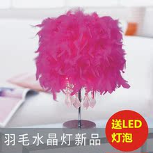 创意羽毛水晶球台灯 结婚庆客厅书房卧室床头 白红紫粉黑酒红玫红