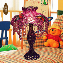 奥古灯饰欧式喜庆手工灯饰田园公主紫色串珠灯罩卧室床头水晶台灯