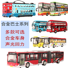 彩珀双节巴士旅游巴士玩具车汽车模型全合金车语音车模男孩礼物