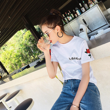 夏天家衣服女夏季2017新款韩版玫瑰花刺绣短袖T恤百搭小心机上衣