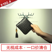 外贸原单磨砂复古蛇纹真皮硬币零钱包包女小拉链短款迷你竹节流苏