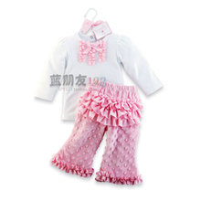 外贸出口原单纯棉长袖T恤衫丝绒长裤套装粉可爱2件套生日