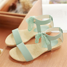 夏季平跟平底凉鞋夏天大童少女初中生小学生高中生韩版系带女鞋子