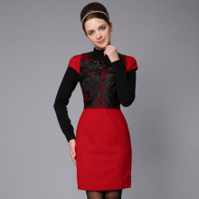 奈奈爱霓2017春装新款韩版女装修身蕾丝毛呢连衣裙打底连衣裙5996