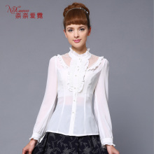 奈奈爱霓2017春装新款修身通勤上衣淑女木耳边长袖雪纺衫女款6102