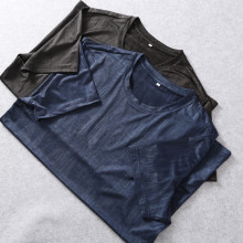 清爽高端冰丝+桑蚕丝 新款男士圆领短袖T恤社会小伙帅修身半袖衫