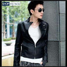 春秋韩版修身摩托车上衣 青年男子机车皮衣男短款皮夹克男 男外套