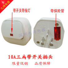 电源转换器10A三极插头插座 带开关灯/保险管16A三扁插头纯铜品质