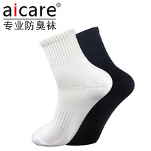 aicare抗菌防臭运动袜子男纯棉全棉吸汗防臭男士中筒男人袜四季款