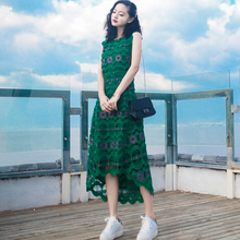 夏季新品女装中长款镂空燕尾裙蕾丝连衣裙波西米亚海边度假沙滩裙