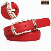 皮带女士真皮红腰带女版牛皮休闲针扣韩版潮正品百搭韩版裤带包邮