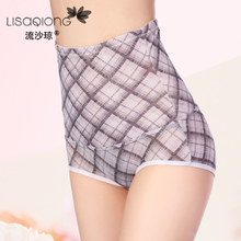 新品 时尚英伦格纹透气中高腰收腹裤束腰内裤四根骨产后久坐瘦身