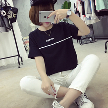 2017春夏新款女装韩版时尚字母印花圆领短袖t恤女百搭宽松体恤潮