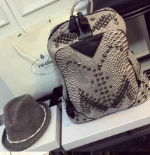 2017新款韩国东大门同款蛇皮纹铆钉 女子书包背包 双肩背包 铆钉