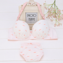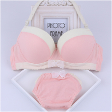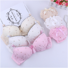 无钢圈文胸套装纯棉 少女甜美聚拢性感小清新无骨舒适内衣套装