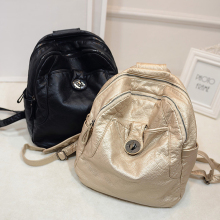 2017新款韩版水洗皮休闲双肩包旅行背包软皮学院风学生书包女包潮