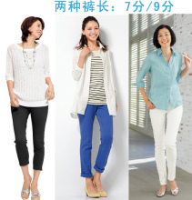 大弹力针织牛仔裤!大码女装松紧腰高腰七/九分裤子小脚裤铅笔裤