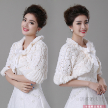 2016新款秋冬季结婚纱礼服外套大码蕾丝白红色选保暖新娘毛披肩