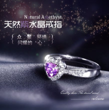 s990足银饰品银戒心形紫水晶戒指女百搭定情礼物银戒指指环可刻字