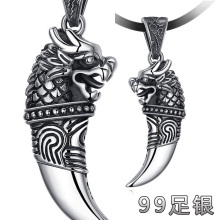 s990狼牙项链 复古泰银男士吊坠霸气帅 兽爪龙头挂坠银首饰品包邮