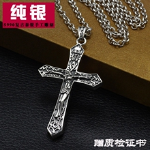 十字架项链 纯银复古吊坠 男士长款泰银耶稣基督霸气十字架天主教