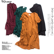 优雅气质~显瘦 重工褶皱舒适水洗铜氨丝宽松短袖连衣裙 2017春夏