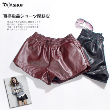 16秋冬阔腿皮短裤 时尚显瘦松紧宽松高腰防小羊皮PU裙裤 女