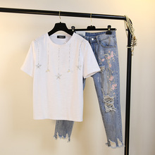 欧洲站春装新款韩版圆领星星亮片短款宽松短袖T恤上衣女潮