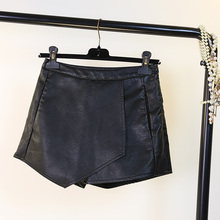 2016 秋季新款女装裤子不规则皮裤短裤女夏 黑色百搭显瘦裙裤