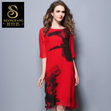 丝宫坊2017春夏真丝女装新款桑蚕丝连衣裙高档中年宽松印花长裙