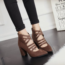 2017春夏新品欧美风粗跟高跟鞋性感尖头条带女鞋时尚舒适百搭单鞋