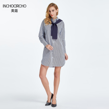 衬衫连衣裙女长袖2017新款春装欧美条纹宽松中长款全棉翻领打底衫