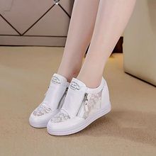 平底内增高网鞋透气运动网面女鞋2017春夏圆头系带休闲网眼小白色