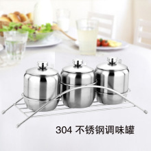 304不锈钢带盖调味罐套装调料罐盐糖罐调料盒3罐厨房用具包邮