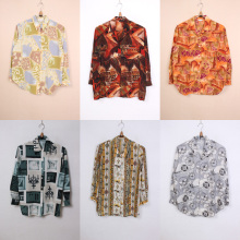 清仓外贸原单古着vintage纯色文艺日系刺绣印花衬衣雪纺孤品