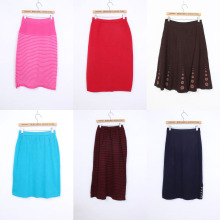 外贸清仓特价复古针织包臀纯色条纹图案A字中长裙一步裙潮女潮