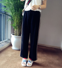 香草可可2017夏装新款 欧洲站韩国女装 侧杠棉麻休闲裤阔腿裤DBE