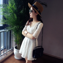 香草可可2017夏装新款 欧洲站韩国女装 唯美纯色钩花连衣裙DBE