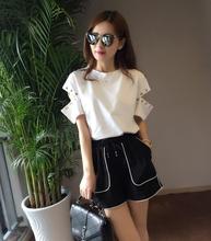 香草可可2017夏装新款 欧洲站韩国女装 玫瑰T+侧字母短裤套装EAI