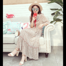 香草可可2017夏装新款 欧洲站韩国女装 前V领雪纺连衣长裙 DBE