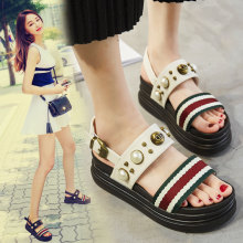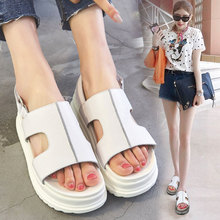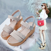 2017夏新款韩版真皮凉鞋女坡跟罗马鞋学生时尚女鞋高跟厚底松糕鞋